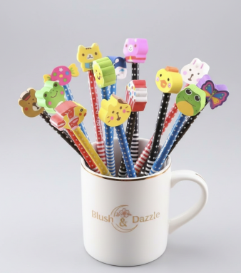 Pencil topped with Eraser 1pcs Any Colour & Design