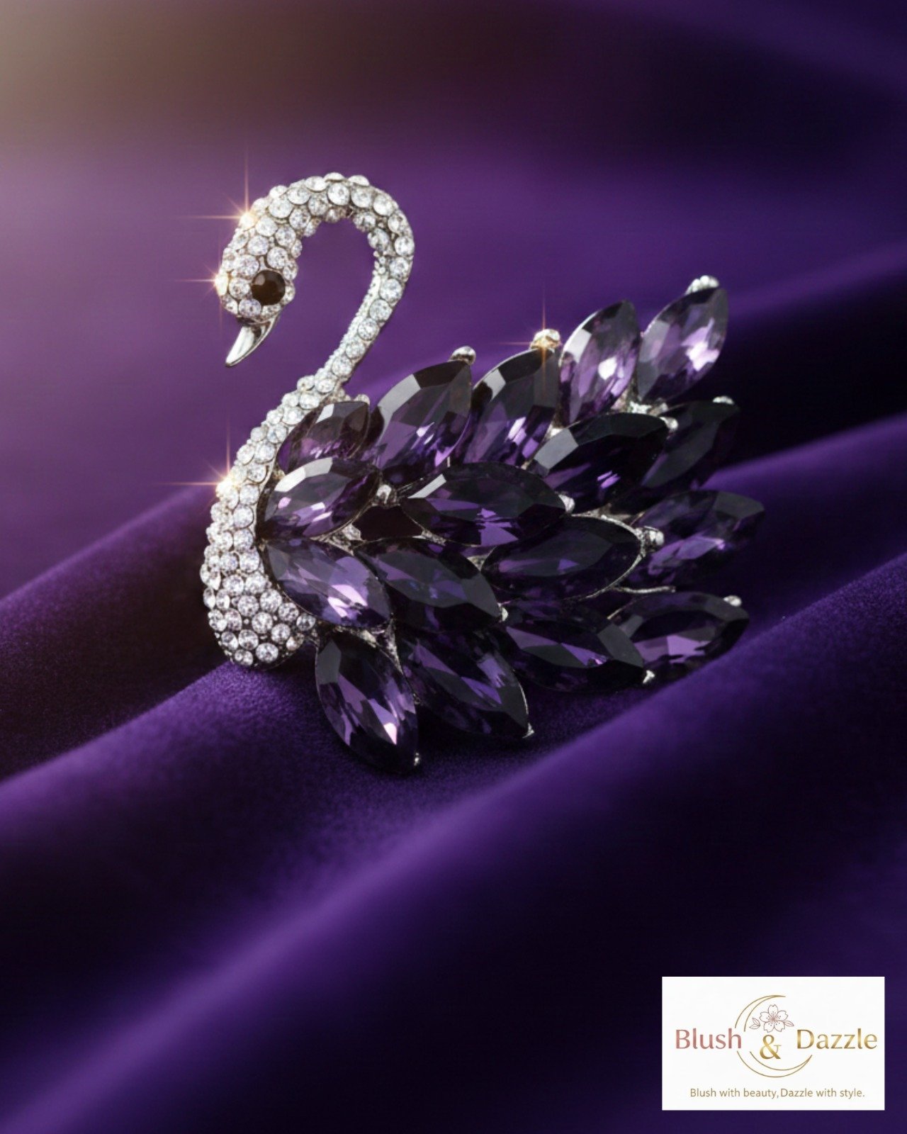 The Crystal Studded Swan Shaped Brooch is crafted using high-quality materials that ensure both durability and aesthetic appeal. The swan silhouette is accented with precisely placed crystals that add sparkle and brilliance, creating a luxurious finish. The pin backing is sturdy, securing comfortably to various fabrics, making it ideal for use on jackets, scarves, dresses, and bags. Every detail reflects artistry, elegance, and functionality.