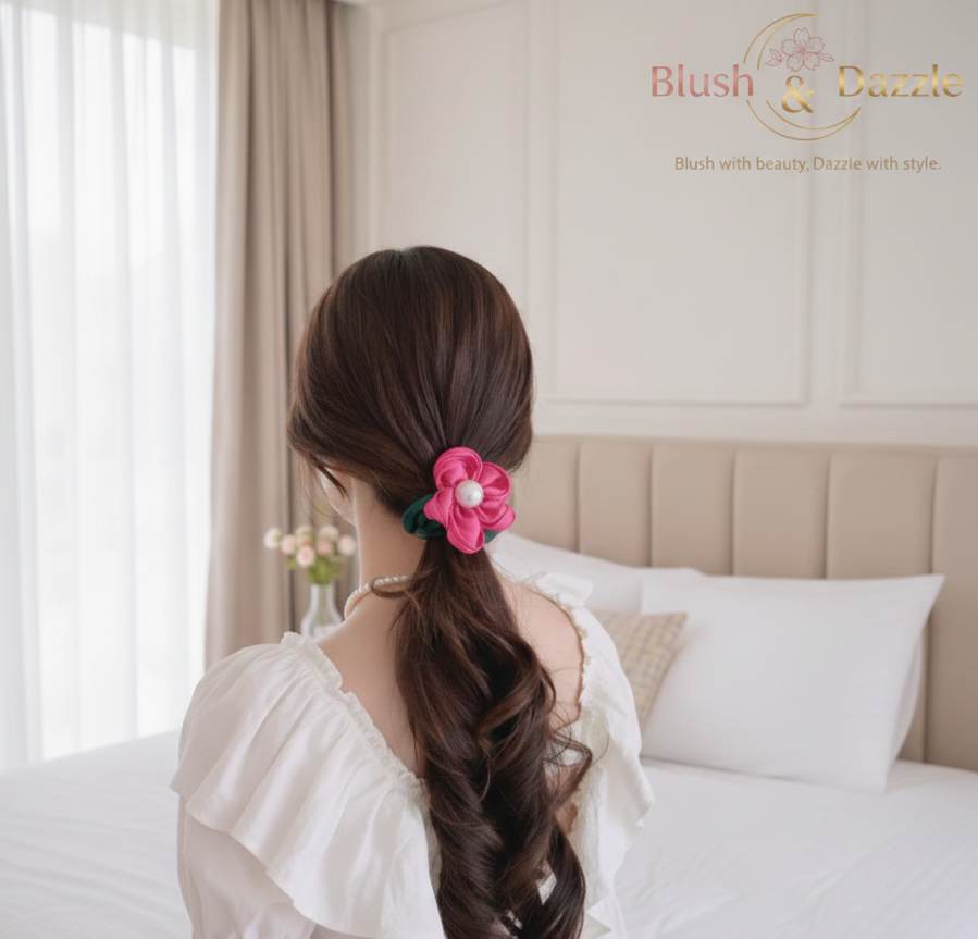 Looking for the perfect gift? The Flower Hair Silk Scrunchie with Pearl Center is a thoughtful and delightful choice for birthdays, anniversaries, or any special occasion. Its high-quality craftsmanship and versatile appeal make it a gift that will be cherished. Pair it with other hair accessories or silk products for a custom gift set thatโs sure to impress friends and loved ones.