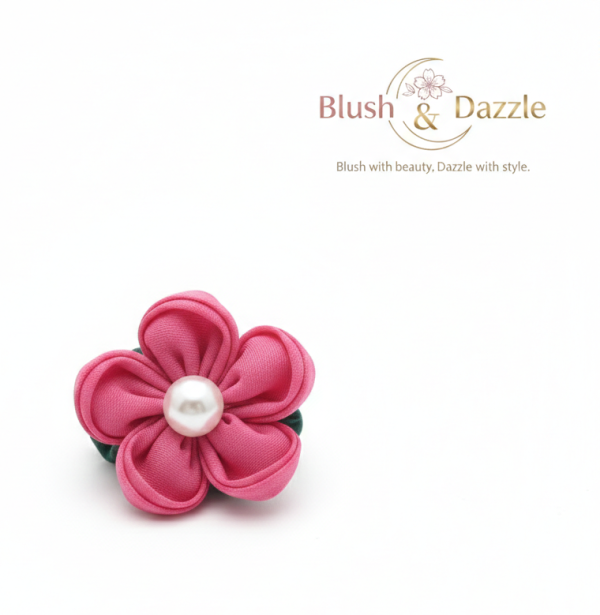 Flower Hair Silk Scrunchie with Pearl Center