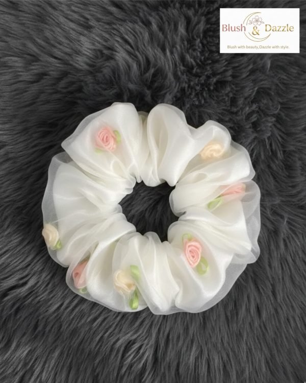 White Floral Scrunchie
