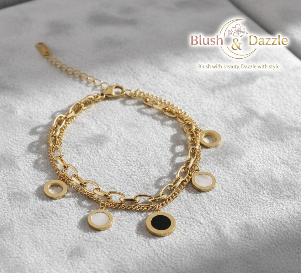 Black & White Circle Charm Double-Layered Bracelet
